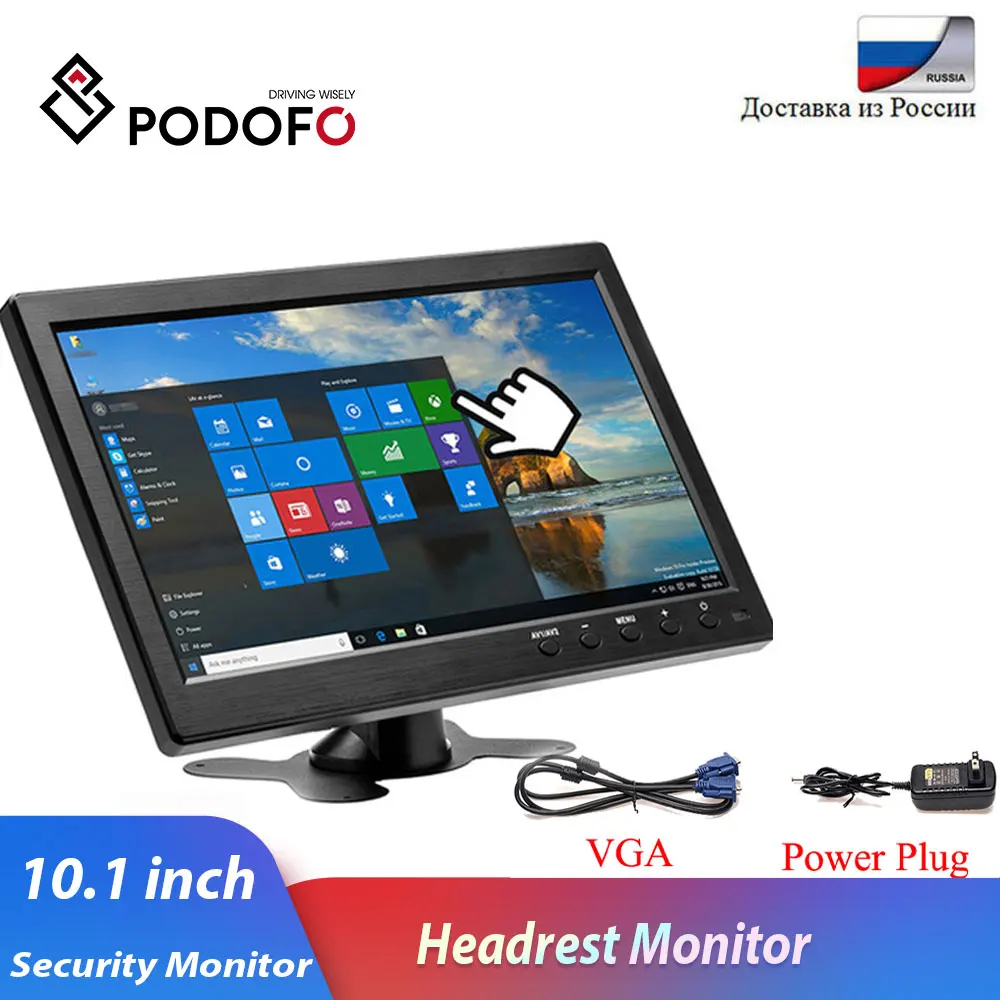 Монитор для подголовника автомобиля Podofo, ЖК-дисплей 10,1 дюйма, HD, VGAAVUSBSD TV и ПК, 2-канальный видеовход, монитор безопасности, DVD-плеер с динамиком