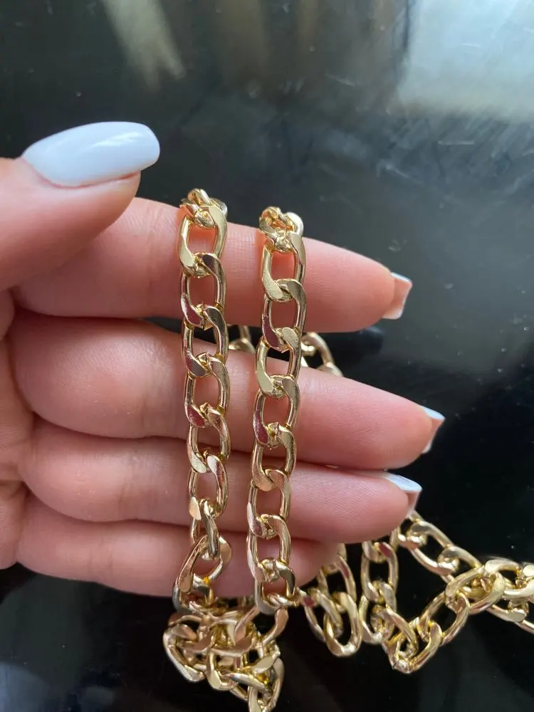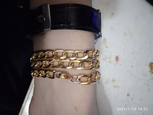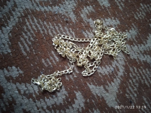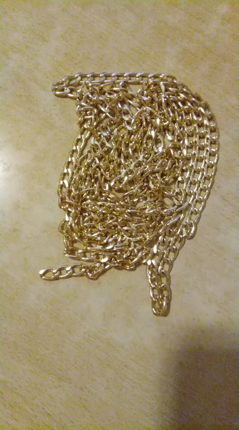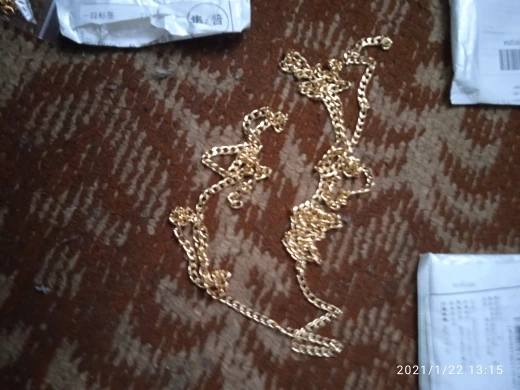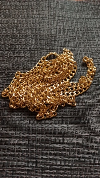 Цепь пришла быстро прямо очень. За 11 дней до волгогр. обл пулей дошла совмещённая вместе с другими 3 посылками. Цепь золотистого цвета довольно таки лёгенькая ну в ней 2 метра хватит на долго. Ну надеюсь хоть этот металл не будет чернеть а то у меня есть одна цепь маленького звена из китая вроде и она черная стала покрылась каким то чёрным налётом а была тоже такая цвет золота. Ну я вот от этой новой цепи отмерил 60 см и ещё крест я ношу на шее и вот в крест ну в колечко на кресте я вдел эту цепь и одел её на шею новую цепь. На 9 мм она. Мне очень нравится. Классная цепь на шее смотрится со стороны красиво очень. Отличный товар рекомендую к покупке