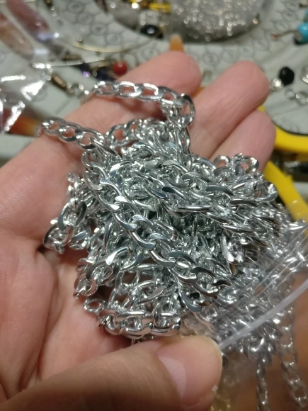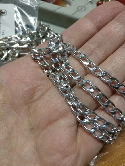 за счёт того что это алюминий цепи лёгкая красивая блестящая доставка быстрая посылка отслеживалась рекомендую к покупке