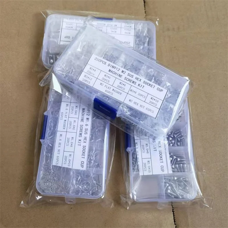 250 шт. DIN912 m1.6 M2 m2.5 M3 винты 304 нержавеющая сталь с шестигранной головкой болты с шестигранными гайками набор в ассортименте