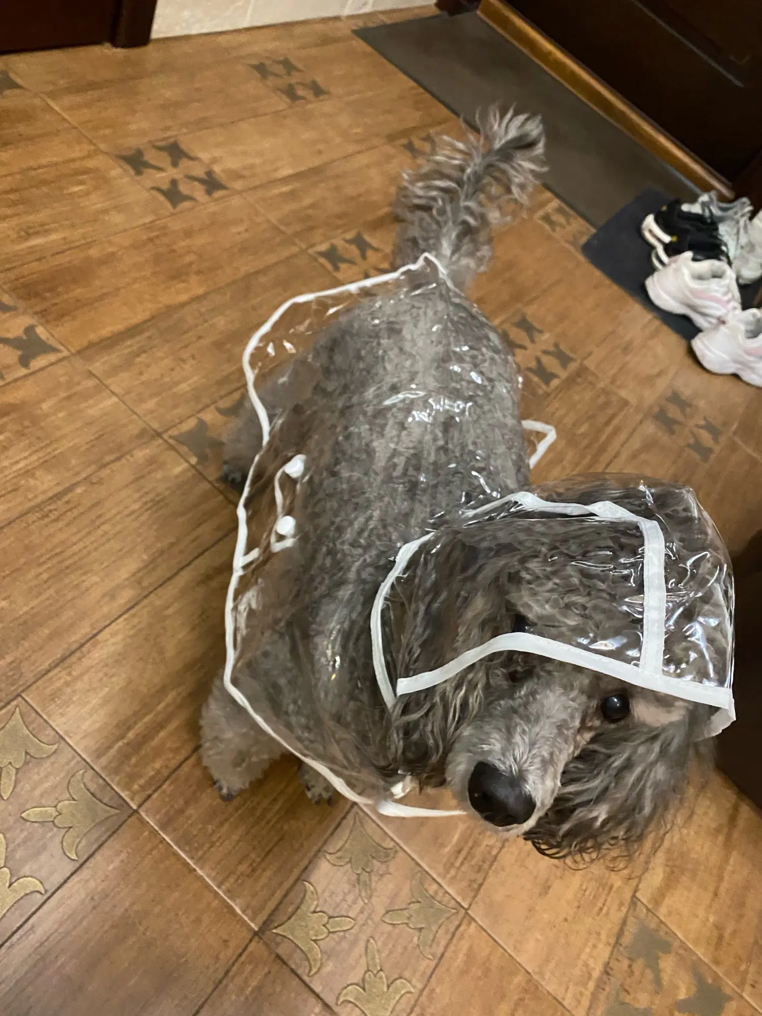 przesyłka szła równo miesiąc, pelerynka wygląda tak samo jak na zdjęciu, polecam rozmiar L pasuje na 4 kg maltanczyka