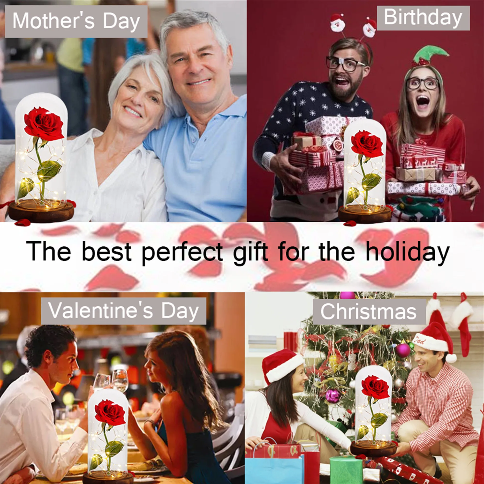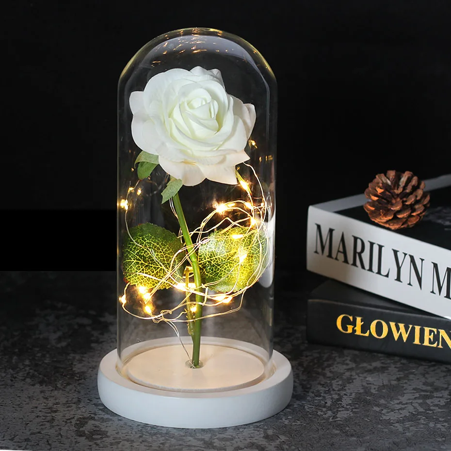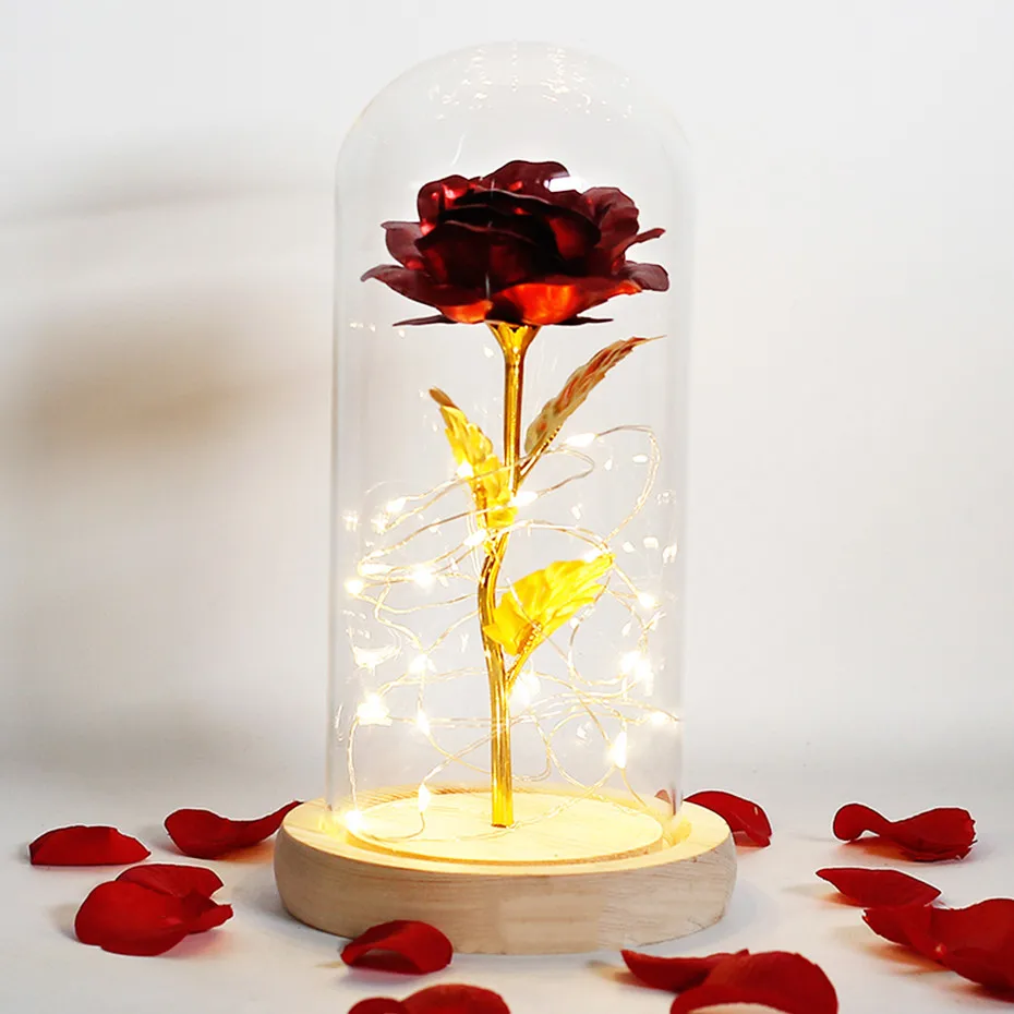 Волшебная Роза Красавица и Чудовище светодиодный стеклянный купол деревянная основа светящийся цветок красный День Святого Валентина подарок на Рождество, Хэллоуин