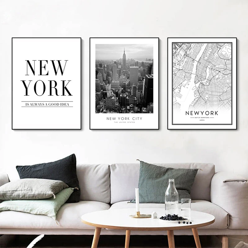 Карта Нью-Йорка, современная городская сцена, холст, картины, черно-белые настенные картины, плакаты и принты для гостиной, домашний декор