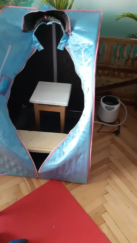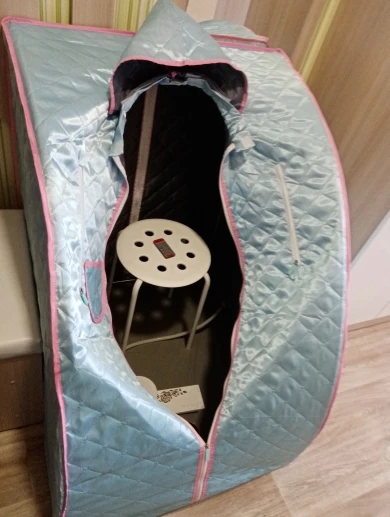 Интересная штука. Градусник показал, что внутри не более 45 градусов даже после 30 минут прогрева. Залез, посидел 20 минут, вроде ничего так, но ничего особенного. Вышел и понял, что расслабился на 100%. После душа только упасть и лежать. А жене даже горячо показалось, тоже полное расслабление. Не ожидал такого эффекта. Мы на скамейке сидели, горячий пар попадает на части тела и слишком горячо. Нужен более высокий стульчик со спинкой. В комплекте еще есть коврик для низа, так как там конденсат скапливается.