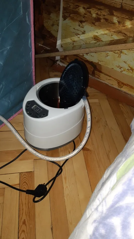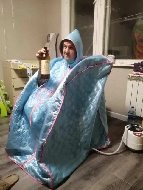 Зависала на границе почти месяц, шутили, что таможенники парятся))). Это, конечно, не баня и не сауна. Пот на висках начинает выступать минут через 20 после начала парения. Жарко только в том месте, где стоит сам испаритель. Ставишь в ноги - греются ноги, ставишь за спиной - греется спина. Остальное тело просто отмокает от испарения После 40 минут такого прогревания идёшь в душ, моешься и нет того расслабления как после нормальной парилки. Просто погреться можно, но не так как в парилке. Полного бака хватает примерно на час парения на максимальной мощности. Собирается легко, инструкция в комплекте.
