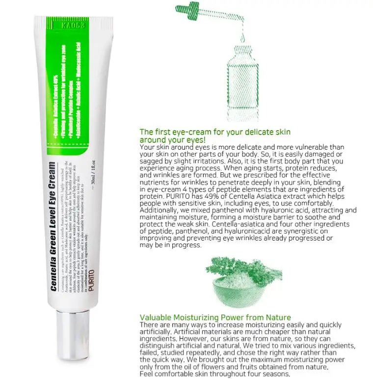 PURITO центеллы Зеленый уровень для ухода за областью вокруг глаз 30 мл восстановление и повышение упругости для ухода за областью вокруг глаз уход за кожей крем для лица против морщин и крем против морщин, темных кругов под глазами
