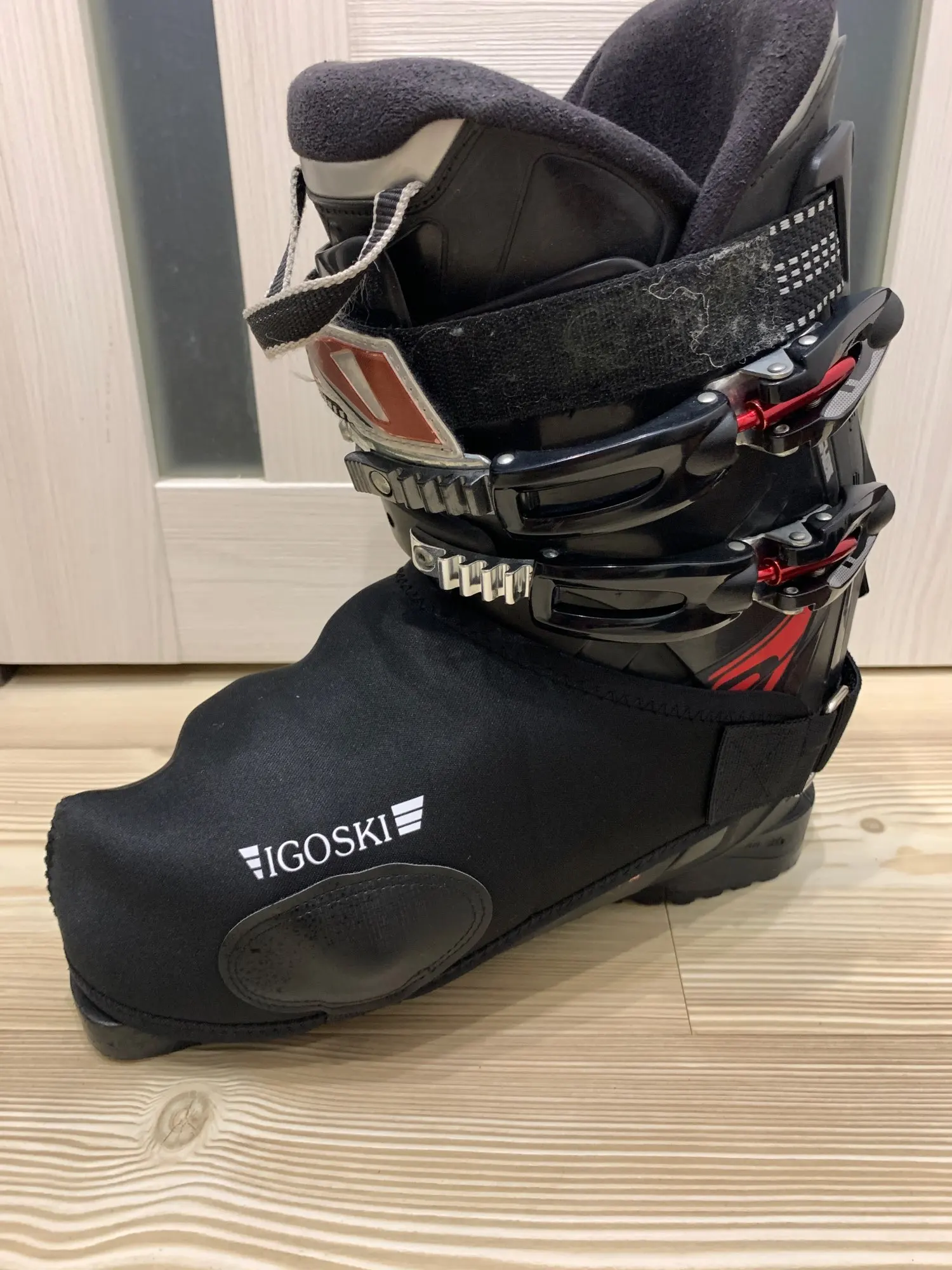Размер вообще мимо! У меня размер обычной обуви 45, лыжной 28.5. Так вот L на нём вообще не застягивается! Зато жене на лыжный размер 24.5 село идеально. Насколько греет не знаю, выгядит прилично, заказал XL.