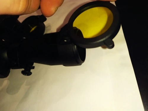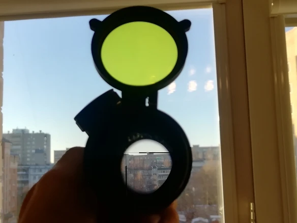 Доставка до Архангельска заняла месяц. Качество изготовления на троечку. С размером порядок - на прицел села плотно, но очень туго открывается сама крышечка. Одним пальцем отщёлкнуть нереально. В открытом положении держится пружинкой. В общем перед выстрелом проще снять в целиком, чем открывать крышку. Днём можно и не открывать, но рано или поздно жёлный пластик помутнеет.