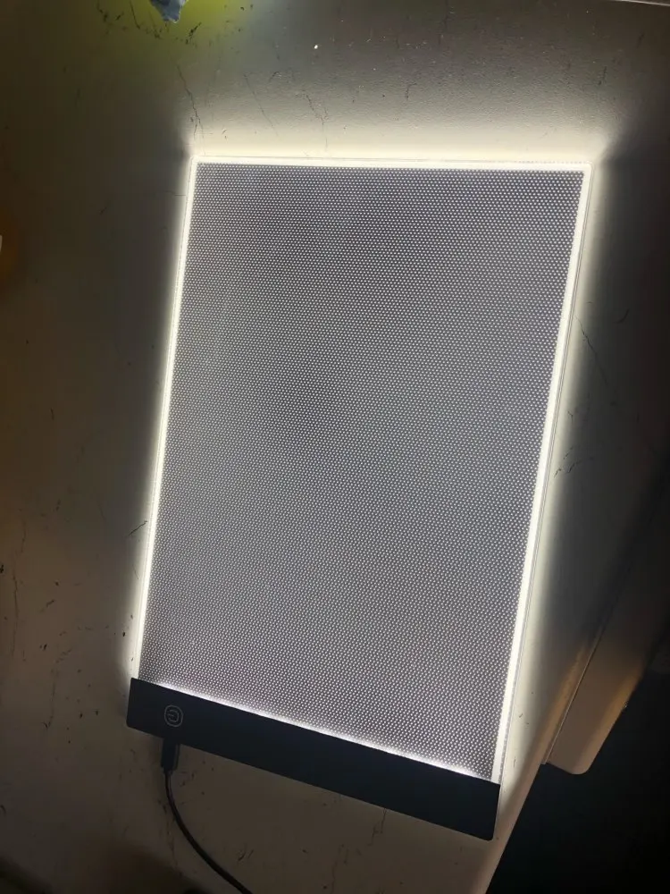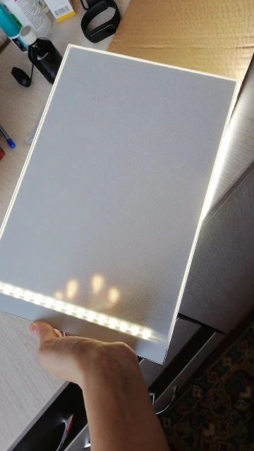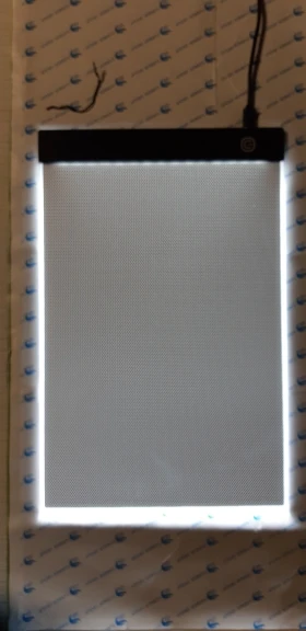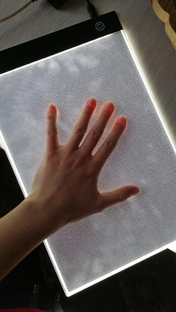 Световой планшет дошел за 3 недели. Всё хорошо. Пытаюсь понять почему рисунок видно лучше с защитной плёнкой, хотя написано, что ее нужно отклеить. The light plate came out in 3 weeks. All is well. I am trying to understand why the drawing is seen better with a protective film, although it is written that it needs to be peeled off.