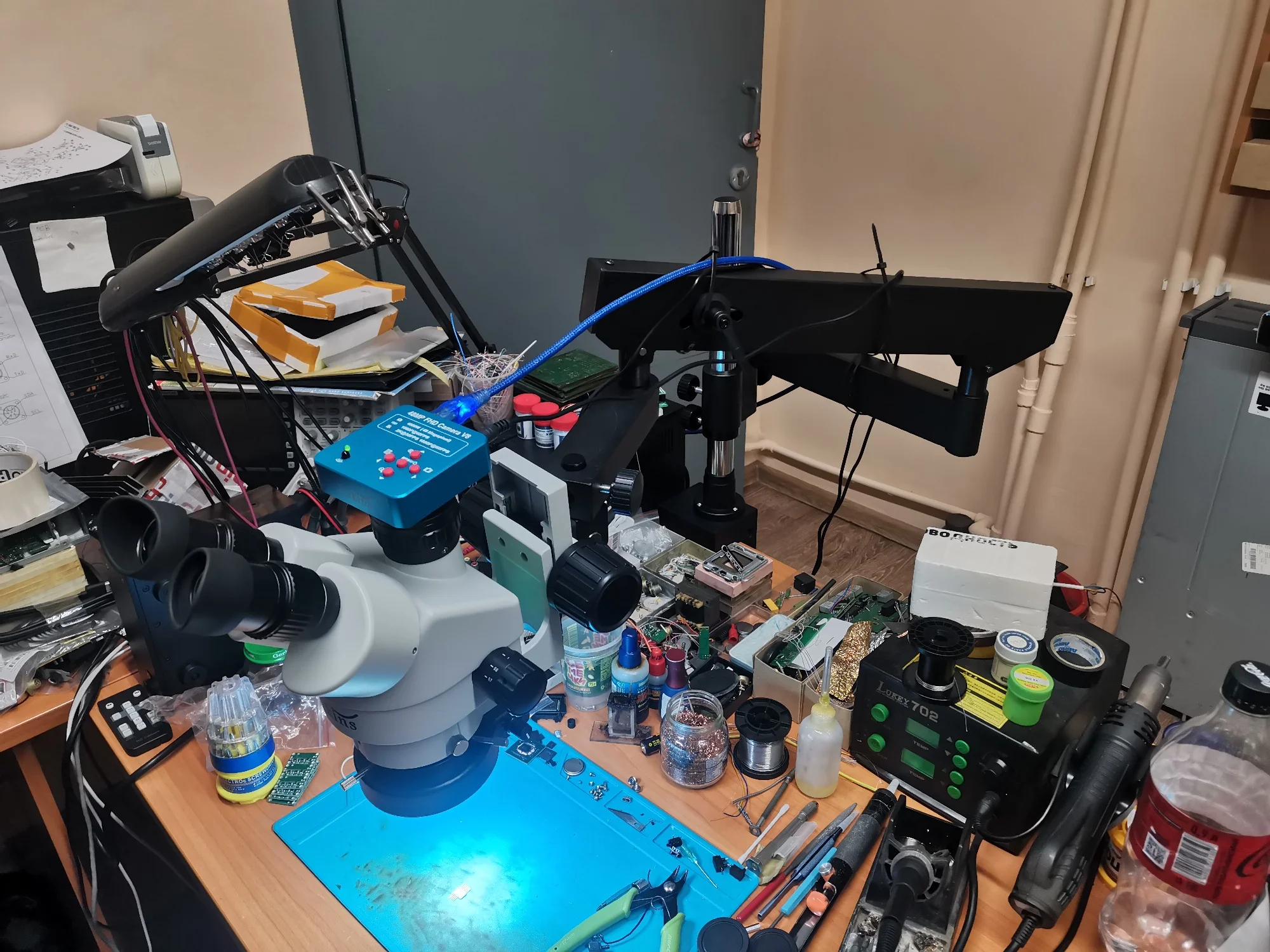 Тринокулярный стереомикроскоп с мультифокальным увеличением 3,5x-90X, подставка с шарнирным рычагом-зажимом 38MP 2K HDMI USB-камера для ремонта процессора телефона