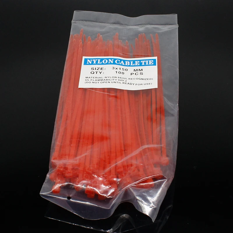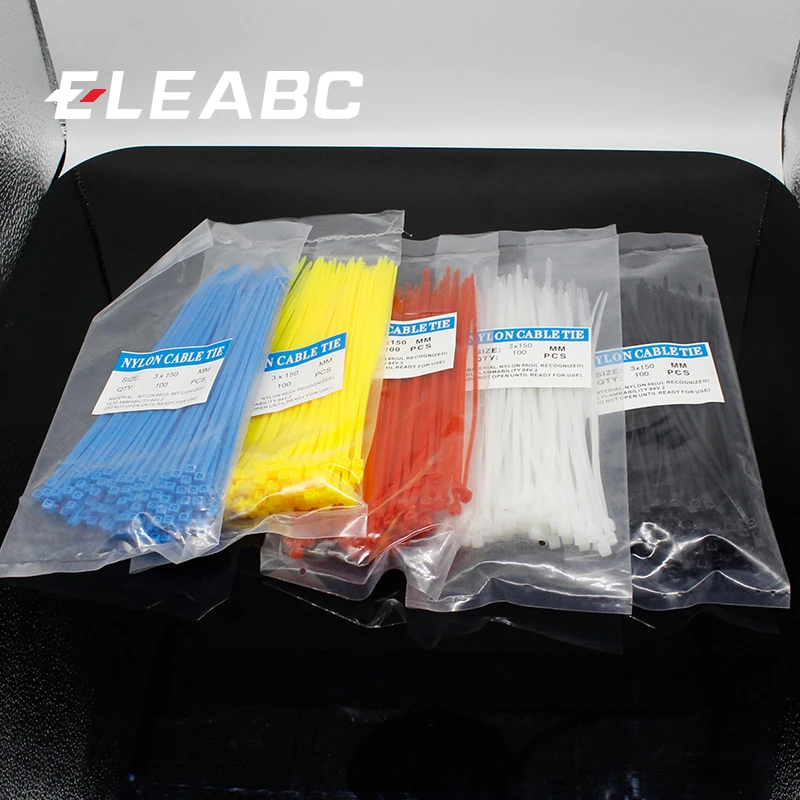 100 шт., самозакрывающиеся кабельные стяжки на молнии, 3x150 мм, белые, черные, красные, синие, желтые нейлоновые кабельные стяжки
