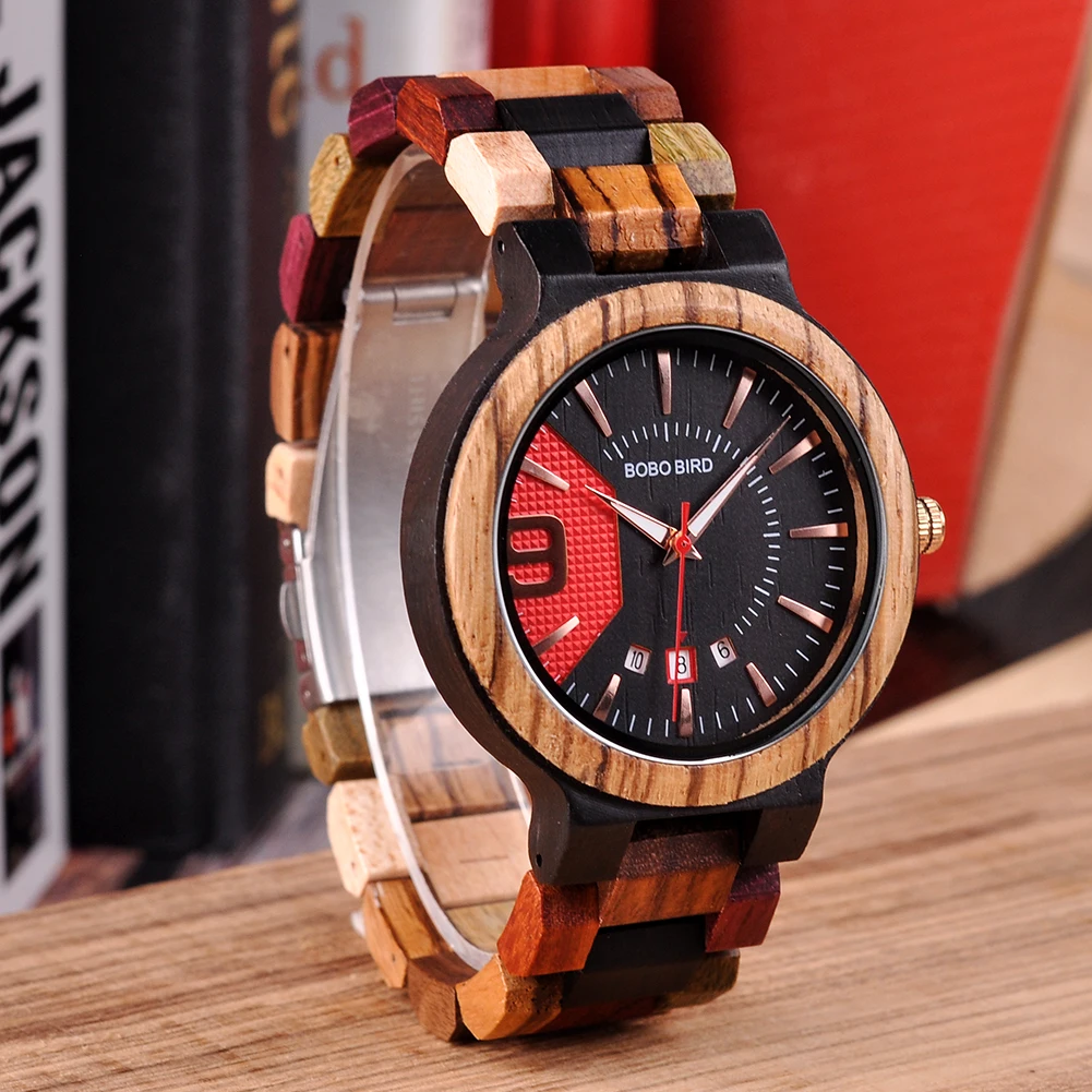Военные деревянные наручные часы с цветным деревянным ремешком, часы, новый дизайн, автоматические часы с датой, коллекция, мужские часы
