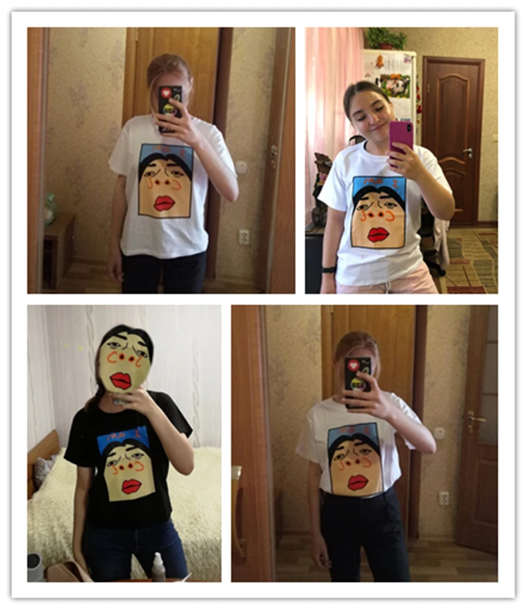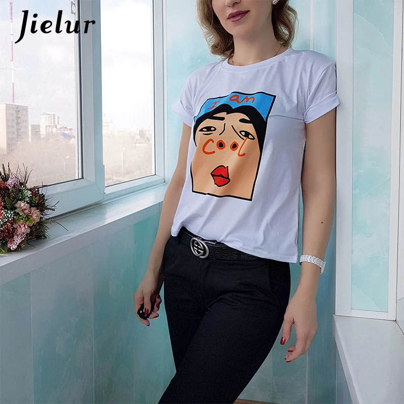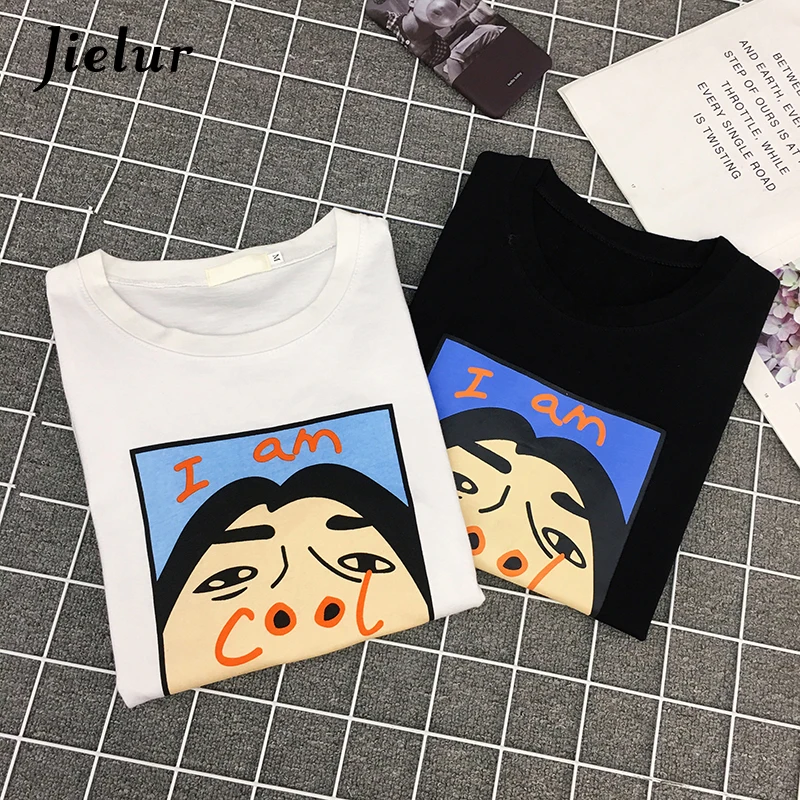 Футболка Jielur женская в стиле Харадзюку, креативная белая модная футболка с забавным принтом надписи, черный топ S-XL