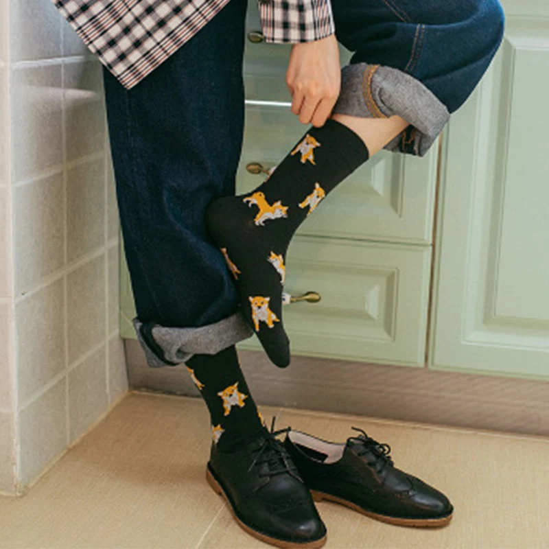 Носки женские в стиле Харадзюку, хлопок, с рисунком животных