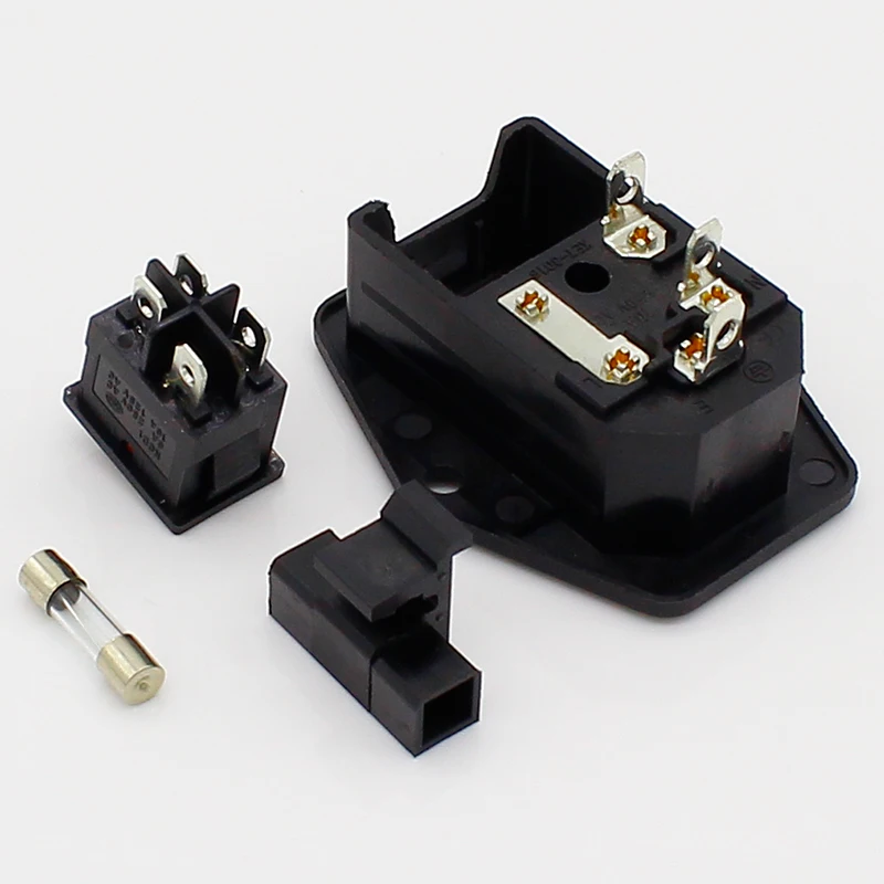Розетка с 3 терминалами и держателем предохранителя, черный, красный, 10 А переменного тока, 250 В