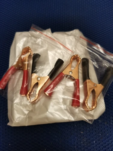 Все доставленно за месяц. Про 50 Ампер продавец загнул, конечно. Я на это и не рассчитывал сразу. Медь использована тонкая, для бытового зарядника пойдет, а для прямого прикурирания, с другого аккумулятора, нет. Ну и цена поэтому соответствующая. Ручки сразу выкинул, это не термоусадка. Поставил термоусадка и сделал шнурки, для зарядного устройства.
