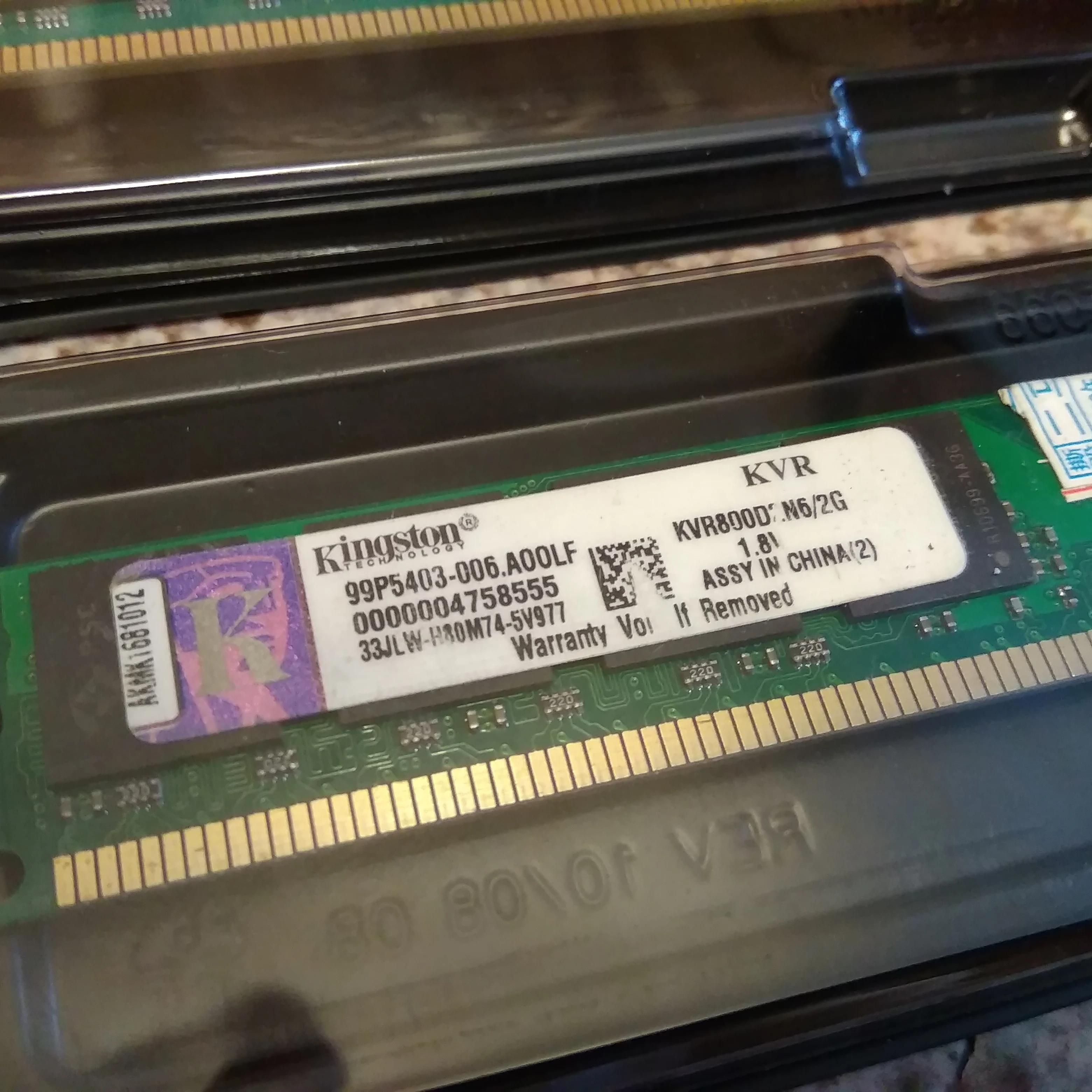 Память как и оговорено - б/у, внешне в хорошем состоянии, не закисшая. Похожа на оригинал, но по факту перешитая, причем криво. На Intel работает! 1/10 модулей попался 667MHz. Где-то серйники есть, где-то нет. Название бренда Kingston King - это вообще кто? Самый промах в недошитых SPD. Оригинальная память работает на 533/667/800 режимах, но некоторые присланные модули зашиты только под 800MHz. Материнки с 533/667 контроллером попросту не стартанут, либо будут работать в безопасном 400 режиме. Заказывайте с запасом, цена позволяет.