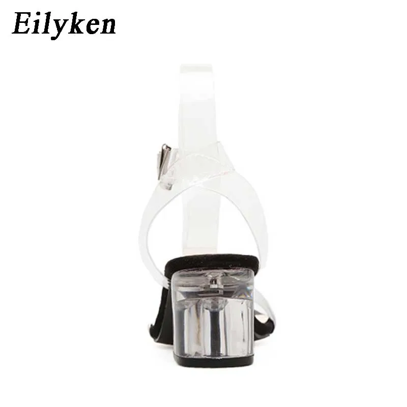 EilykenКоллекция 2022 года; Прозрачные сандалии из пвх; Леопард с кристаллами; Женские прозрачные босоножки на высоком каблуке с открытым носком; Тапочки на квадратном каблуке; zapatos