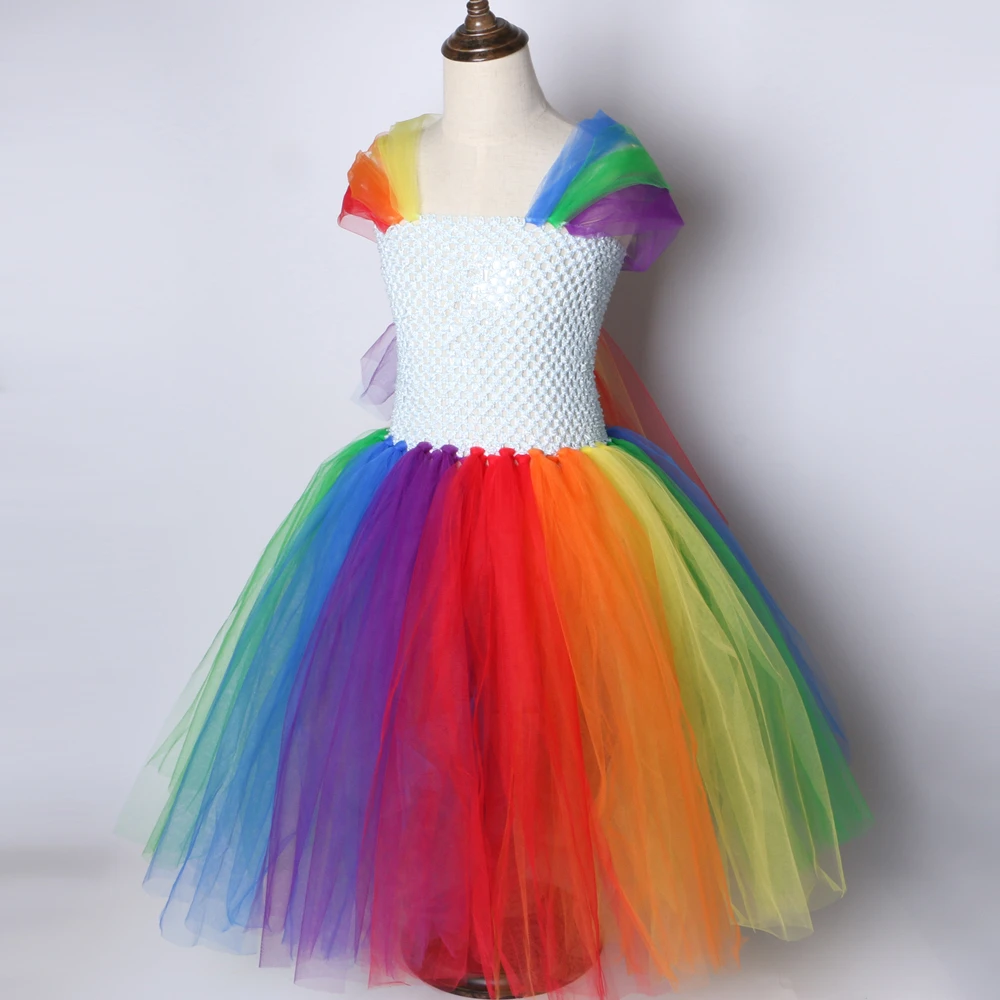 Детская юбка-пачка цветов радуги для девочек изящное цельнокроеное платье детское платье принцессы лошадь вечерние платья для девочек на Рождество и Хеллоуин; Платье с рисунком пони, маскарадный костюм