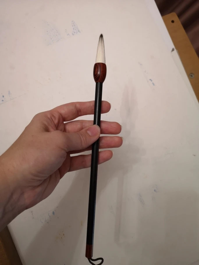 давно хотела эту кисть. Ура, то что я и ожидала. Люблю китайские кисти, они универсальны и для каллиграфии, и для акварели.