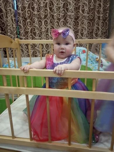 классное платьишко,просто огоньбрала к н.г. (на 6 месяцев)а нам пока 4 месяца сейчас сентябрь...надеюсь в н.г. будет как раз,качество огонь,брала на вырост.единственное НО! это то что долго шло(дольше заявленного срока)
