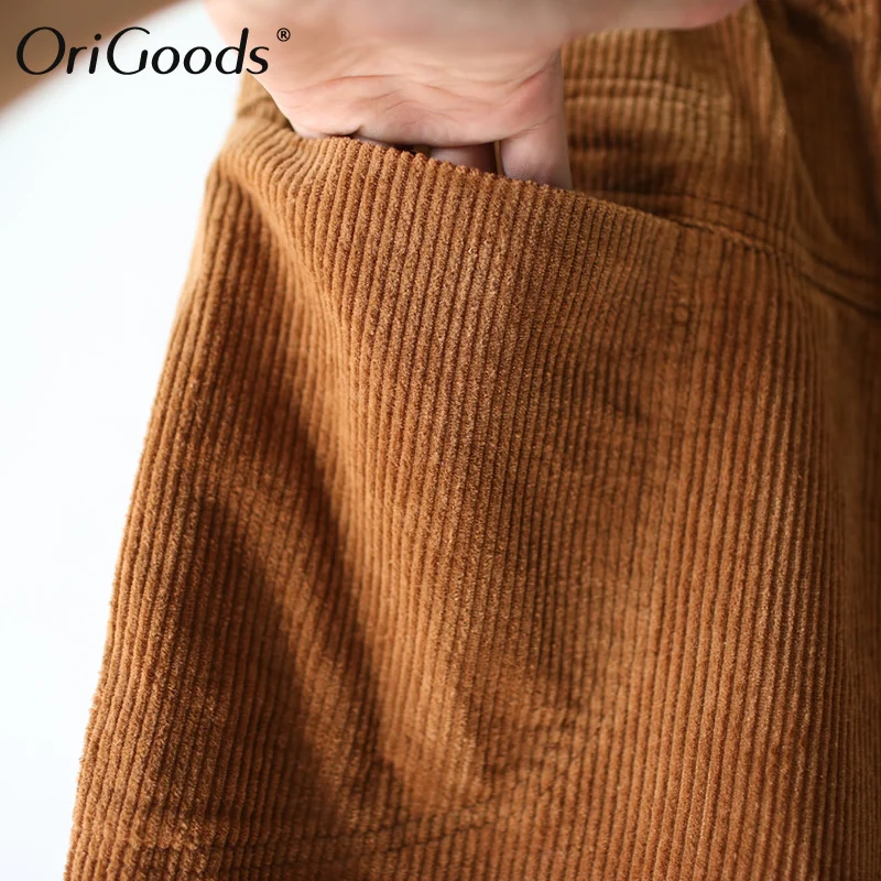 OriGoods вельвет Для женщин штаны-шаровары хлопковые Винтаж однотонная серая черные брюки шаровары Для женщин вельвет Панталон A307