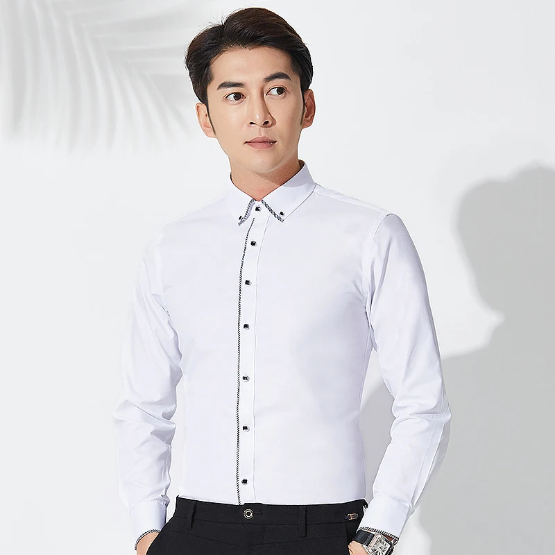 Новое поступление, клетчатая оправа, воротник с пуговицами, длинный рукав, тонкая посадка, легкий уход, хорошее качество, однотонные деловые мужские платья, рубашки