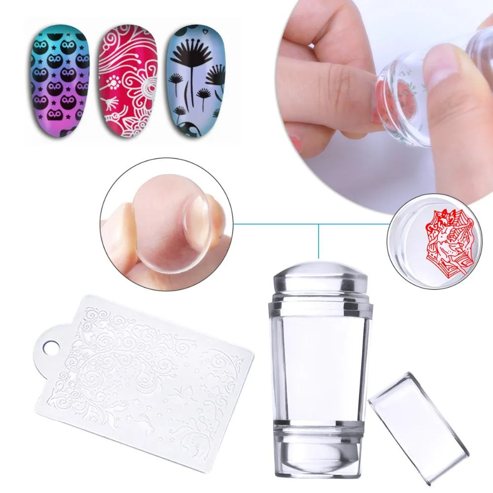 Пластины для стемпинга для ногтей, 10 шт.компл., цветы, Ловец снов, Рождественский дизайн ногтей, Прозрачная силиконовая головка для ногтей, скребок для стемпинга, дизайн ногтей