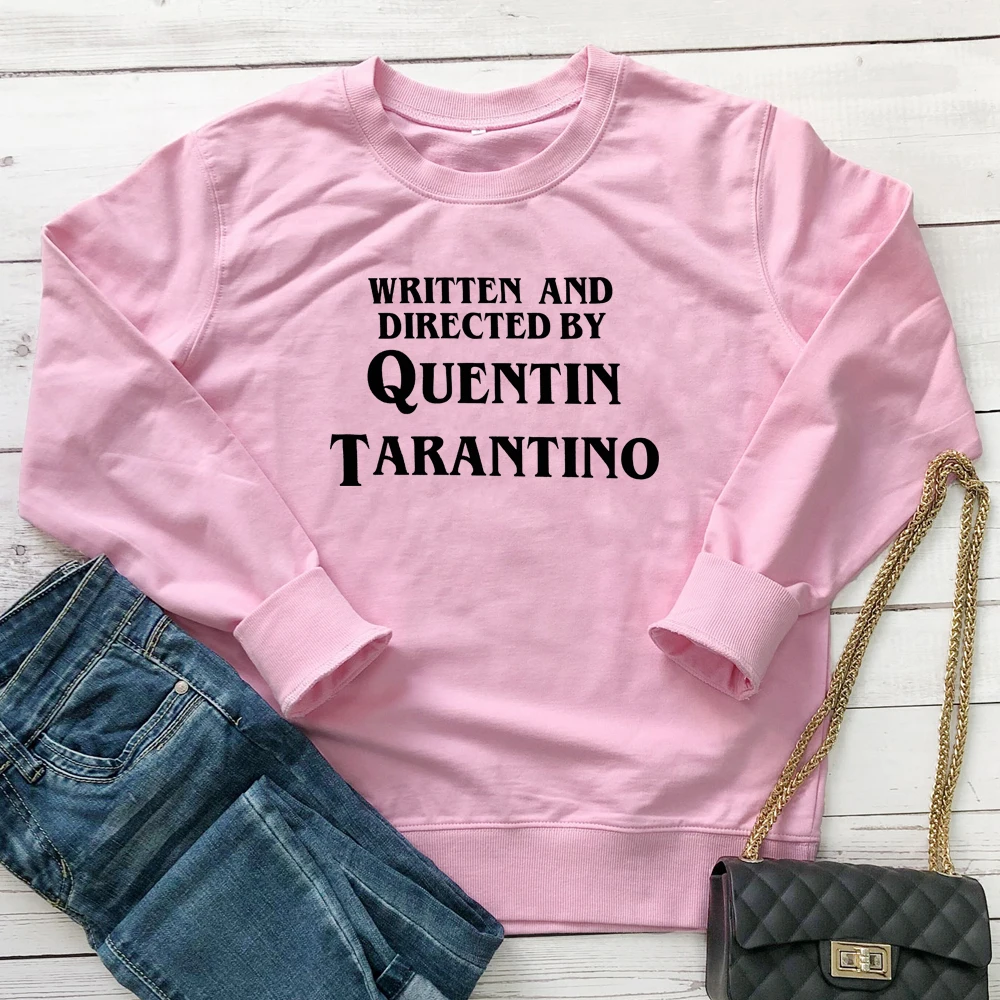 Толстовка с надписью и адресом Квентина Тарантино, повседневные весенние топы, высококачественный желтый джемпер из хлопка, джемпер с круглым вырезом Тарантино