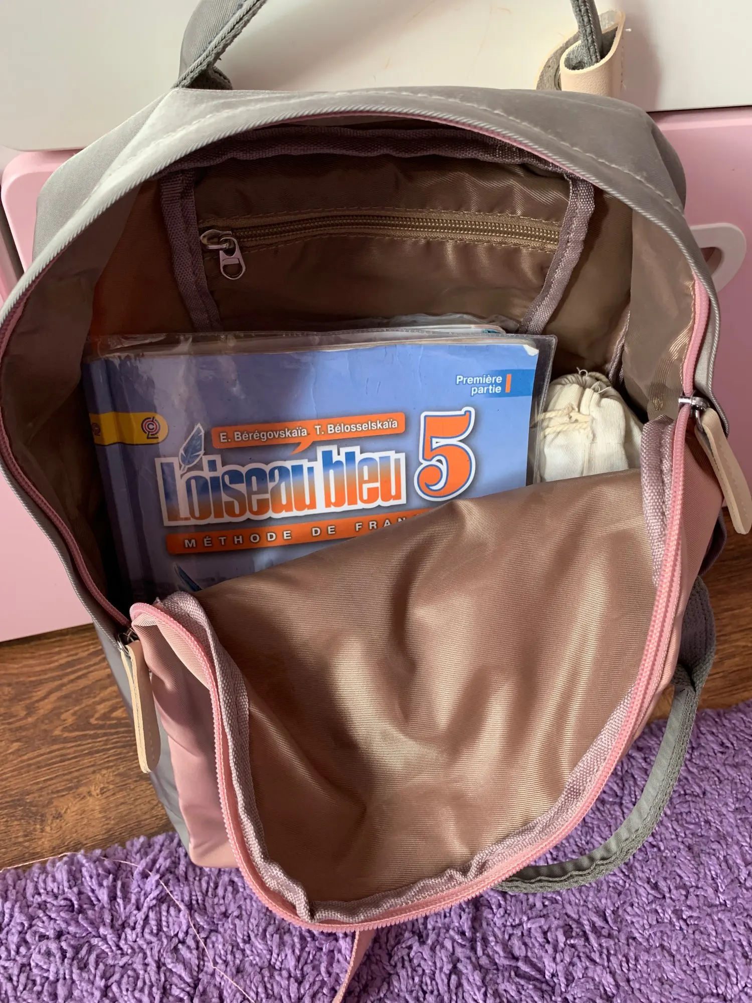 Отличный рюкзак, много карманов, швы качественные, нитки нигде не торчат. Розовый немного темнее, чем на фото. Брали для ученицы 5 класса, в рюкзак помещаются даже самые большие учебники. Как будет в носке, покажет время. Пока всем довольны.