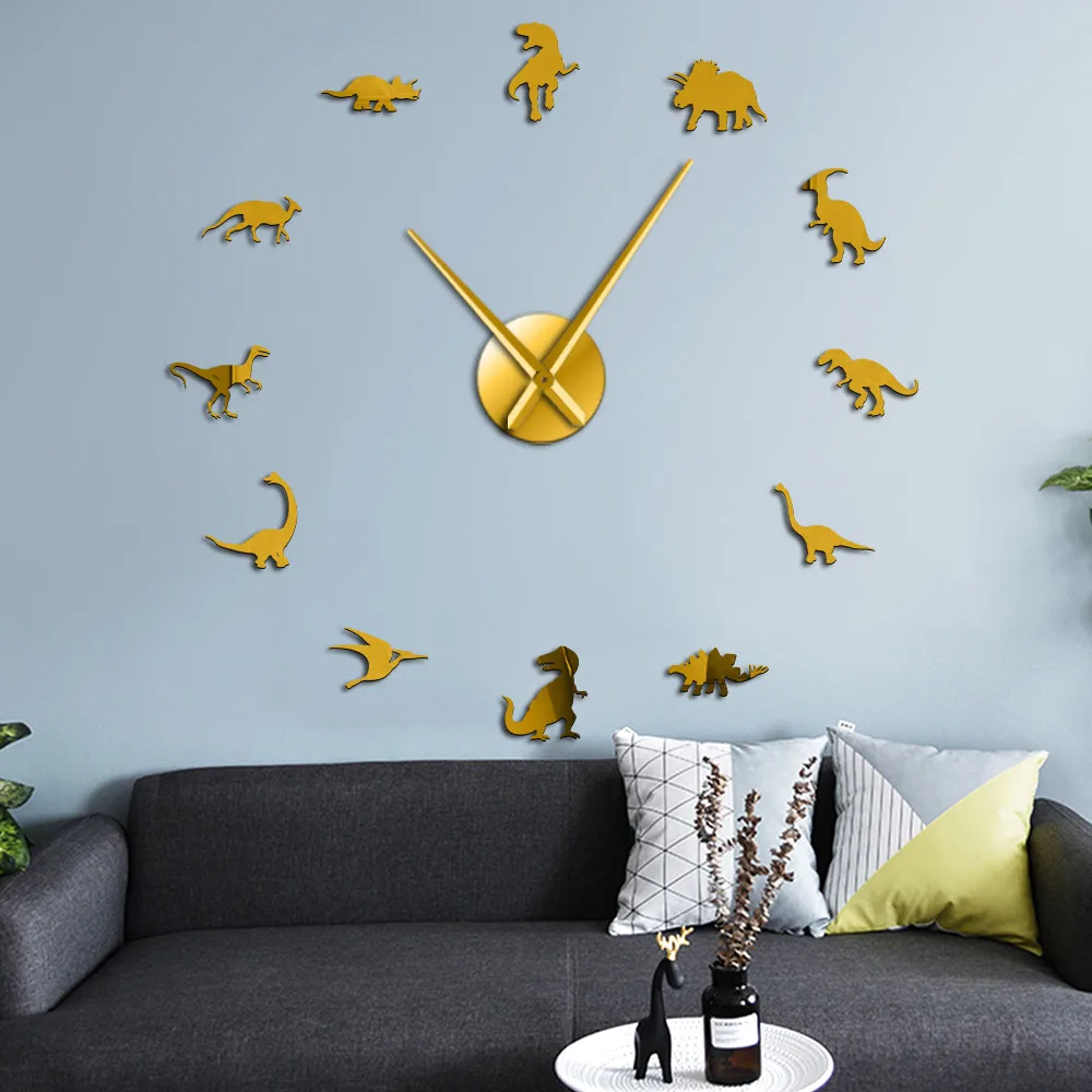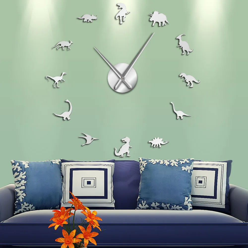 Большие настенные часы T-Rex для творчества, Динозавры юрского периода, украшение детской комнаты, гигантские Безрамные настенные часы, динозавры, современные часы