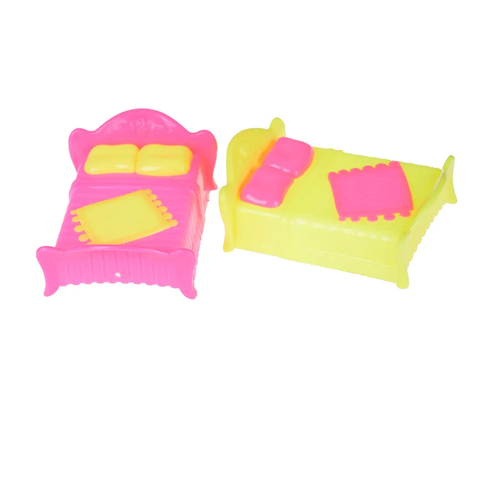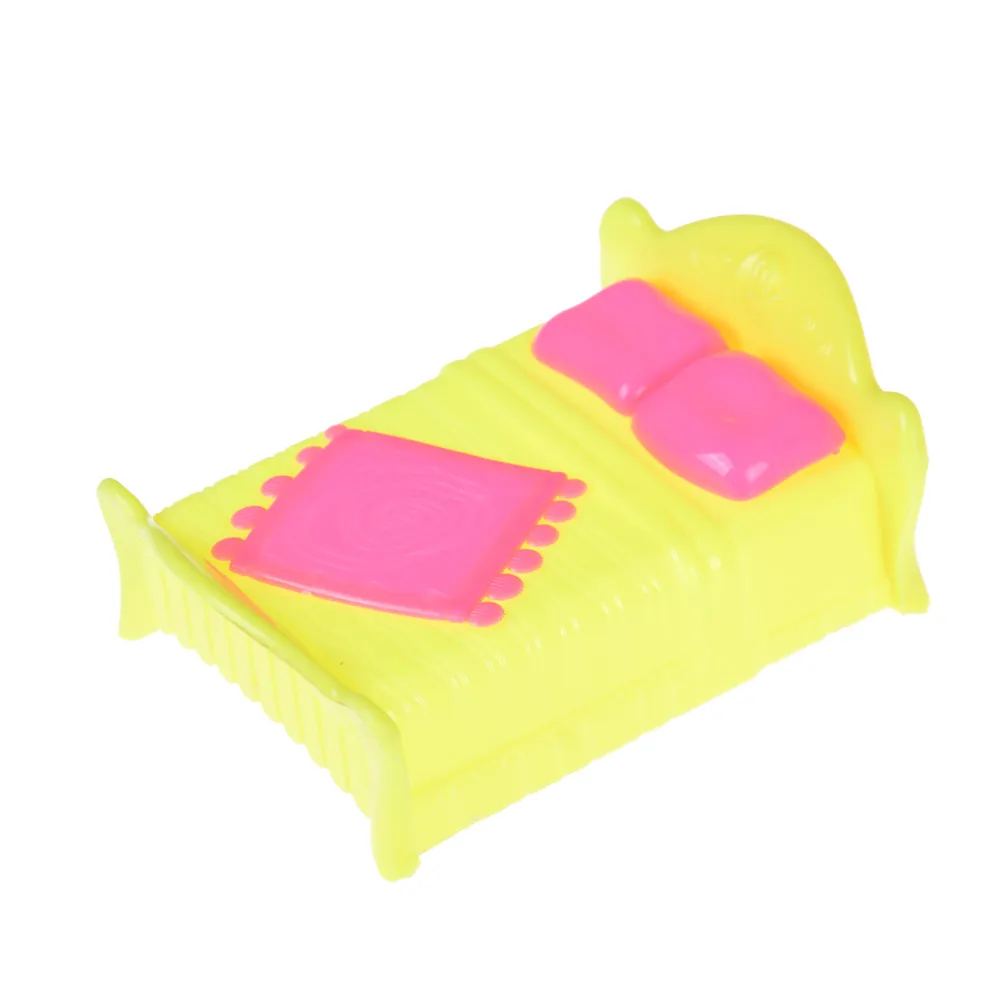 1 шт., модная пластиковая кровать, мебель для спальни, кукольный домик для девочек, розовый, желтый или фиолетовый, подарок на день рождения для девочек