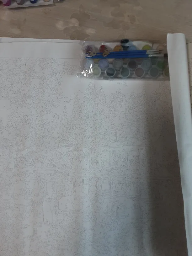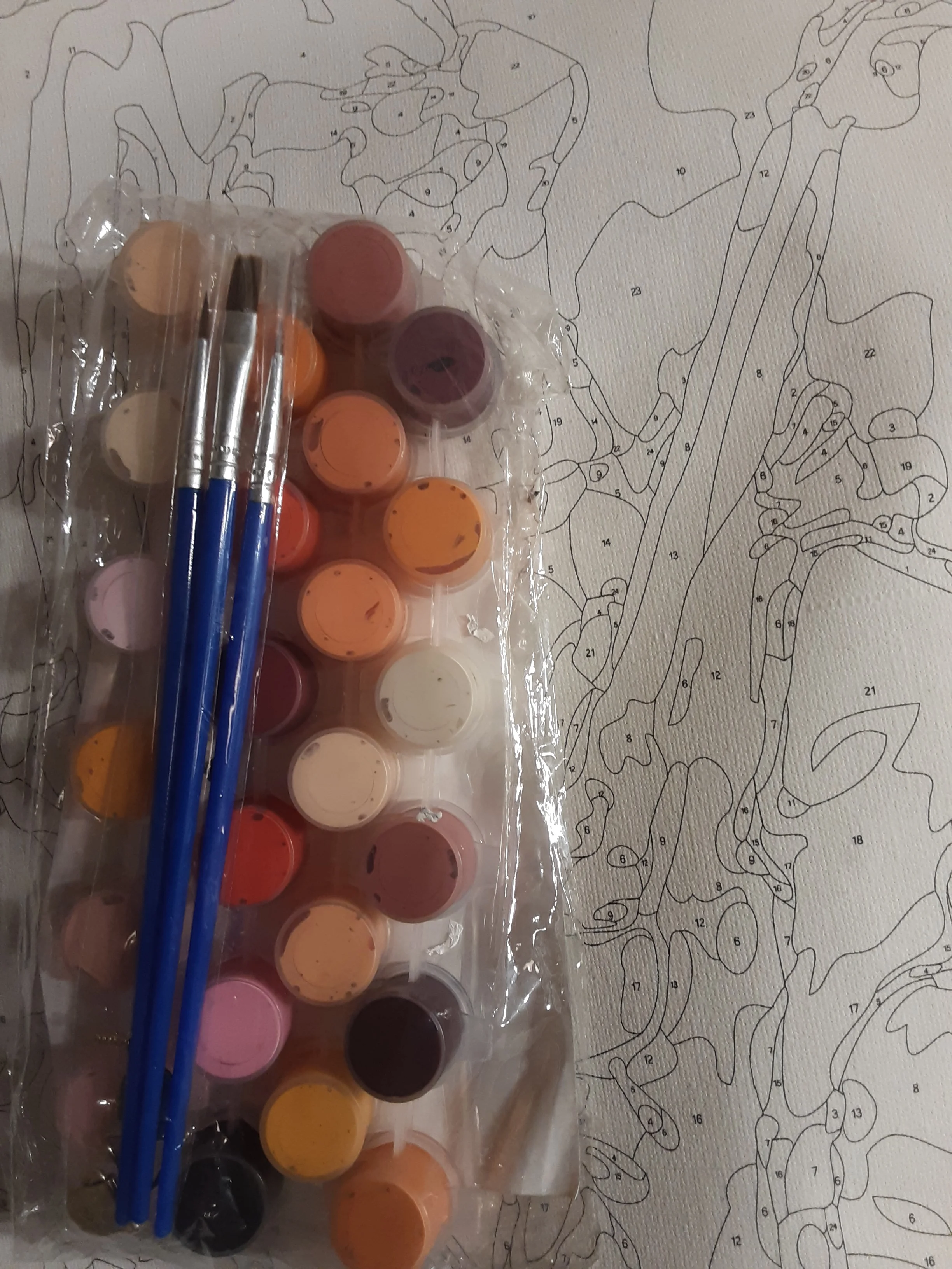 Настоящий холст, не клеёнка, что очень важно! Свежие краски. Мелкие детали для раскрашивания. Быстрая доставка. Маленькая картинка образец есть, а вот дополнительный лист с цифрами не положили. То есть, перед тем как приступить к работе нужно фотографировать по частям холст для подсказки.