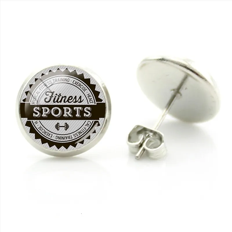 Серьги-гвоздики в стиле гантели TAFREE 12 мм стеклянный кабошон для фитнеса, спортивного клуба, панк, ювелирные изделия для бодибилдинга, для мужчин и женщин, подарок FQ492 Изображение продукта: