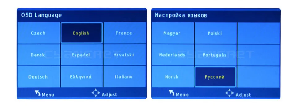 Примечание: ISDB-T версия поддерживает только 6 языков: английский, португальский, французский, немецкий, испанский, итальянский.