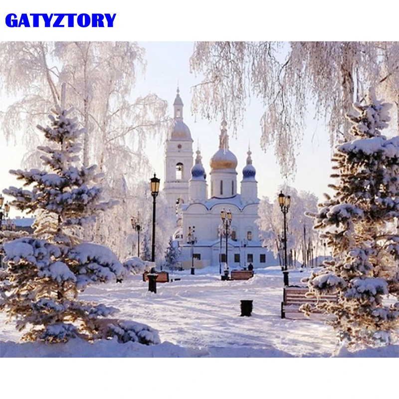 Набор для рисования по номерам на холсте, Снежная рамка, пейзаж, уникальный подарок
