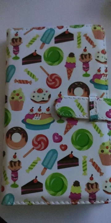 Как описано в объявлении и как на фото. Это заняло много времени, около полутора месяцев. Он поставляется с некоторыми подарочными наклейками. Выглядит хорошо для фотографий instax mini, немного торчит, но все равно остается очень крутой альбом. Он пришел в подарок несколько наклеек, деталь в конце и в концов.