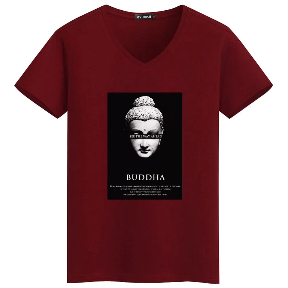 Буддизм дизайн мужские Sakyamuni футболки Мода Индийский Будда статуя мужские футболки Slim Fit повседневные хлопковые футболки размера плюс 5XL