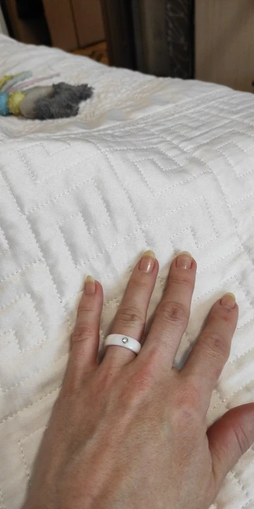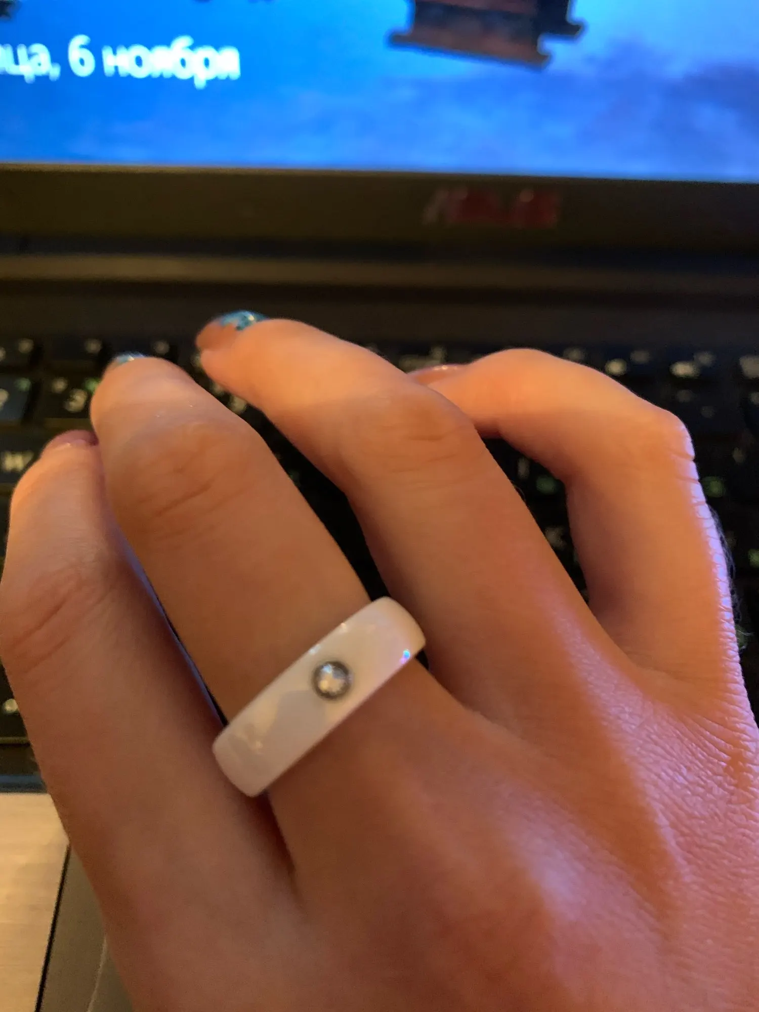 Описание точное, керамика перламутр. Размер 7 отлично подходит на 17.5, стандартные) пальцы. Доставка в Минскую обл., месяц. Продавца рекомендую.