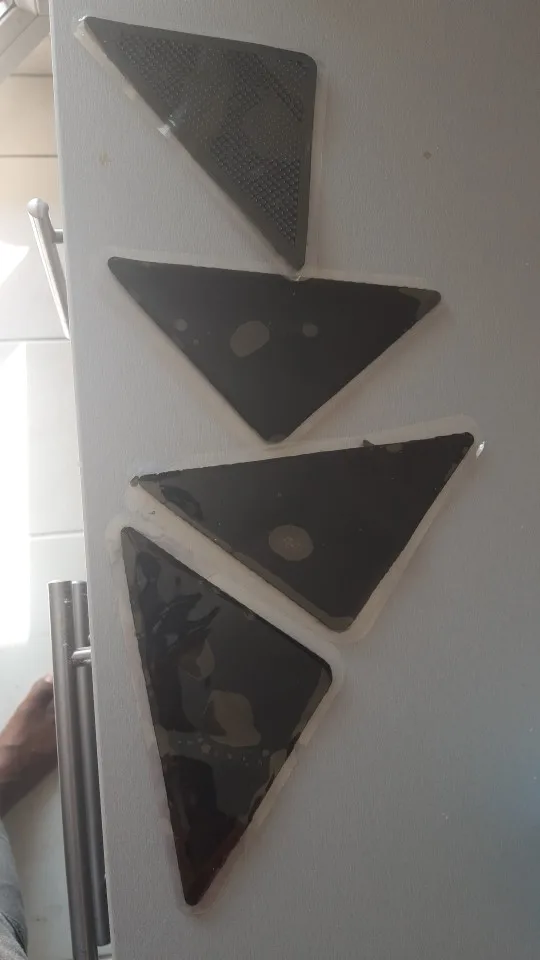 ни сразу разобралась, нужно сначала приклеить черные листы, чтобы сделать поверхность гладкой , а после уже эти силиконовые штуки. написано что можно мыть и использовать далее, пока не пробовала, еще после стирки треугольники для гладкости , скорее всего отпадут, пока ничего не понятно, сейчас приклеила ,не болтается , но когда решу постирать будет понятнее, удобная эта система или нет