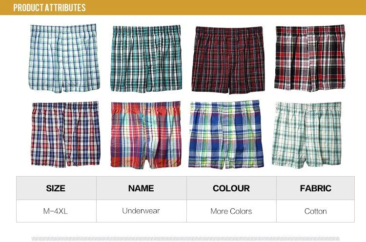Высококачественные Брендовые мужские шорты-боксеры, 4 pcs, тканые хлопковые 100% классические клетчатые чёсаные мужские трусы, свободные дышащие, большие размеры