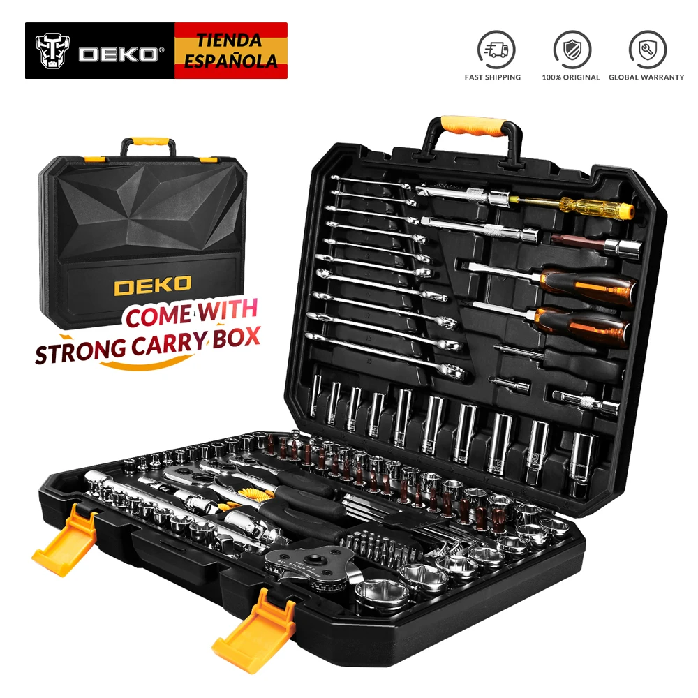 DEKO 140 шт Профессиональный набор инструментов для ремонта автомобиля Авто трещотка гаечный ключ Отвертка Гнездо механические инструменты набор WВыдувная коробка