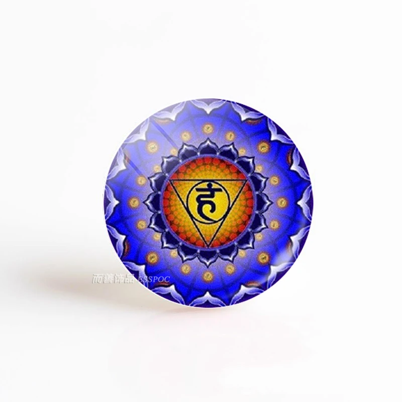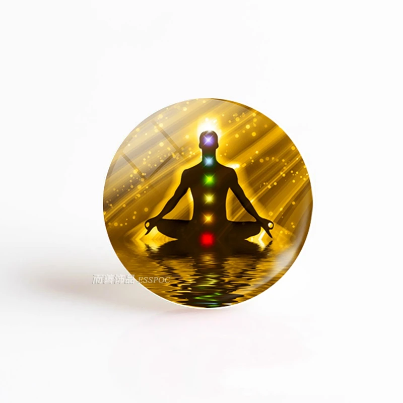 5 шт.лот 7 Чакра Йога Ом Символ стекло кабошон 25 мм DIY круглые бусины кулон ручной работы IDY Шарм индийские ювелирные изделия