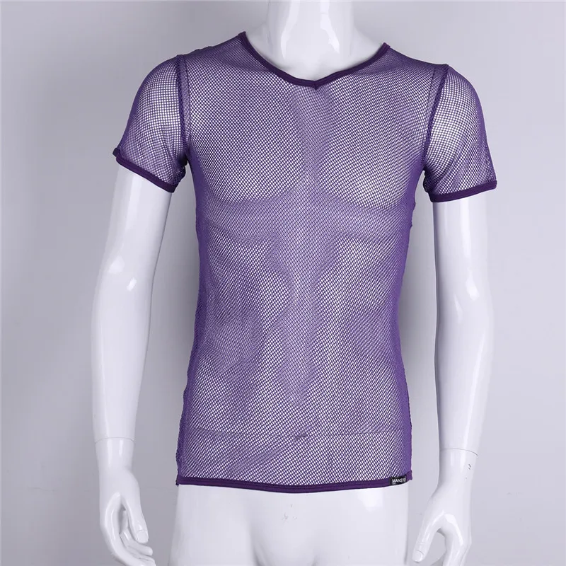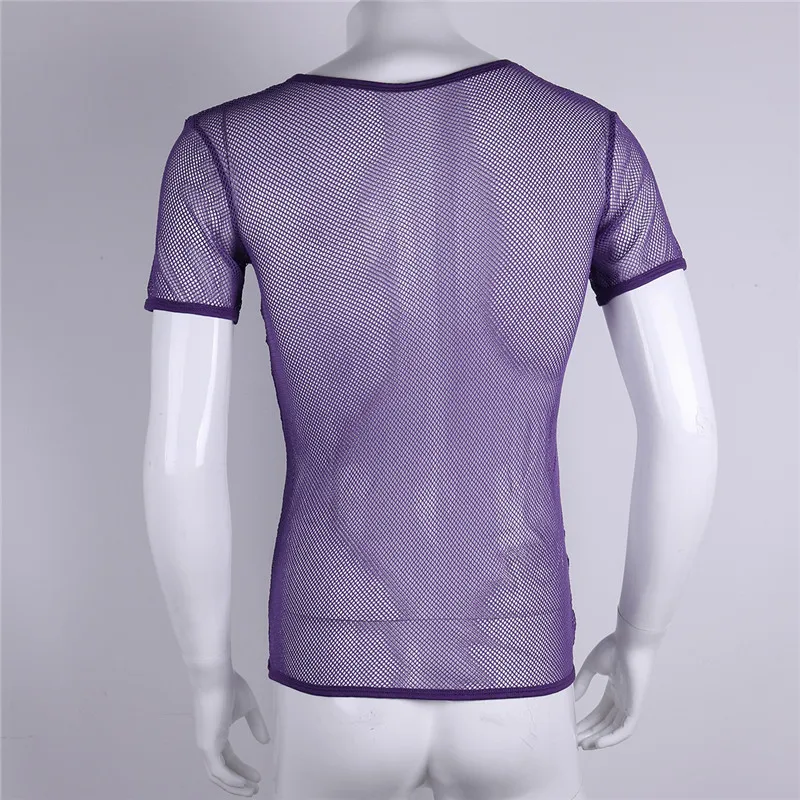 Популярные сексуальные мужские повседневные стильные рубашки из сетки, v-образный вырез, короткие рукава.