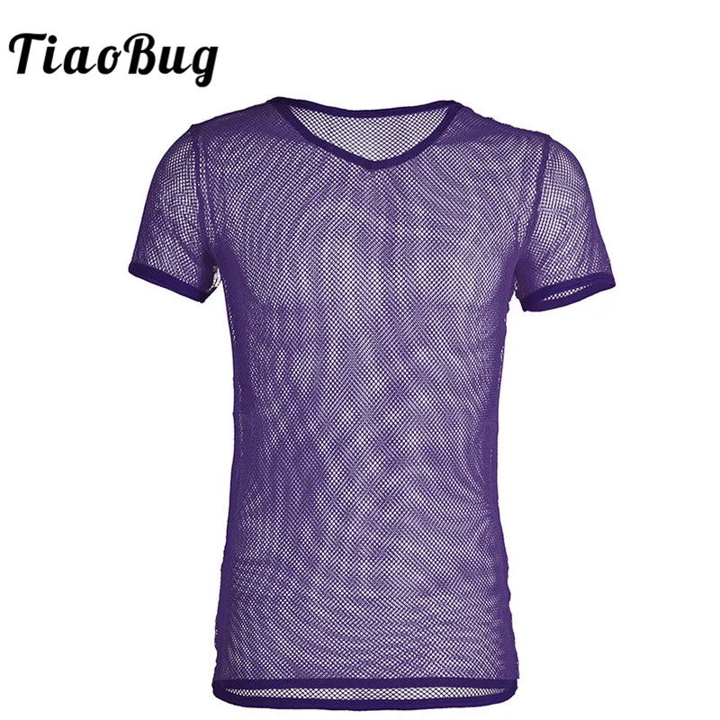 TiaoBug, мужские ажурные прозрачные сетчатые футболки, Спортивная дышащая футболка, топ, Сексуальная мужская Клубная одежда для геев, ПАНКОВ
