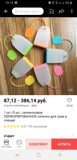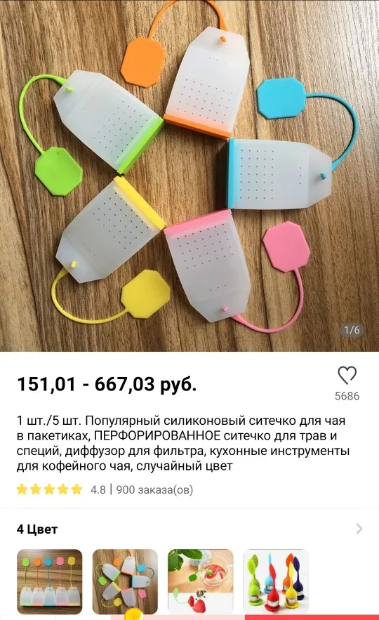 Селиконовый пакетик, в описании отмечено как 1pcs/5pcs. Как вы это поймете как одна упакопка пять штук. Самое главное что данное утверждение подтверждается когда вы пытаетесь выбрать цвет, там так же, представлено сразу пять пакетиков на одной картинке и нельзя выбрать какой то цвет отдельно. В итоге и фактически пришёл один пакетик, цвета которого вообще небыло. Я так понимаю продавец таким образом обманывает покупателя. Что бы не говорили что я пытаюсь обмануть. Размещаю фото как было на странице заказа, при выборе цвета и что прислали по факту. Еще не испытывал, но не уверен что донышко не будет вываливаться в кипятке.