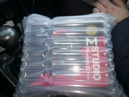 Получил на почте. Посылка шла примерно 2 недели +- Упаковка пакет, внутри воздушная подушка-пакет и фирменная коробка с наушниками. В целом неплохо, коробка даже не помята. Наушники как у всех. Звук неплохой, на 4++, до идеала конечно далеко, но и ценовой диапазон. Единственное что при долгом использовании давят на уши, может конечно голова большая. По итогу советую наушники и продавца. Отличный товар за свои деньги, со скидкой конечно же.