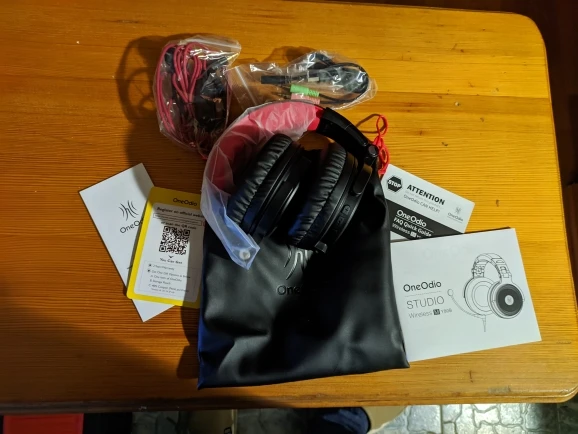Коробка показалась маленькой, но когда вытащил наушники, то понял, что просто аккуратно сложенные. Куча проводов и переходников для подключения ко всему. Большой разницы при подключении по проводу и при bluethooth не заметил. Преобладают средние и низкие, высоких маловато, но в целом звук нормальный, амбюшуры большие и мягкие, настроек по голове тоже много.