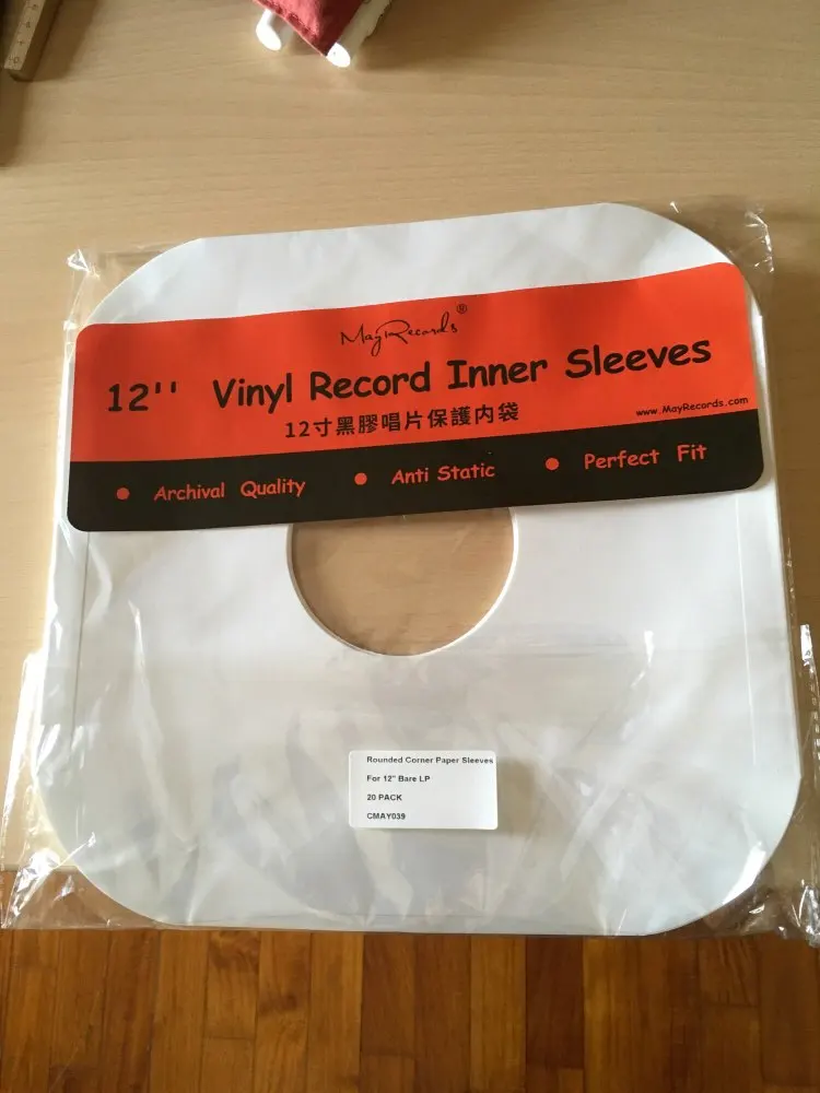 20 дюймов, высококачественные тяжелые белые внутренние рукава из крафт-бумаги без кислоты для винила 12 дюймов LP с отверстием и закругленными углами