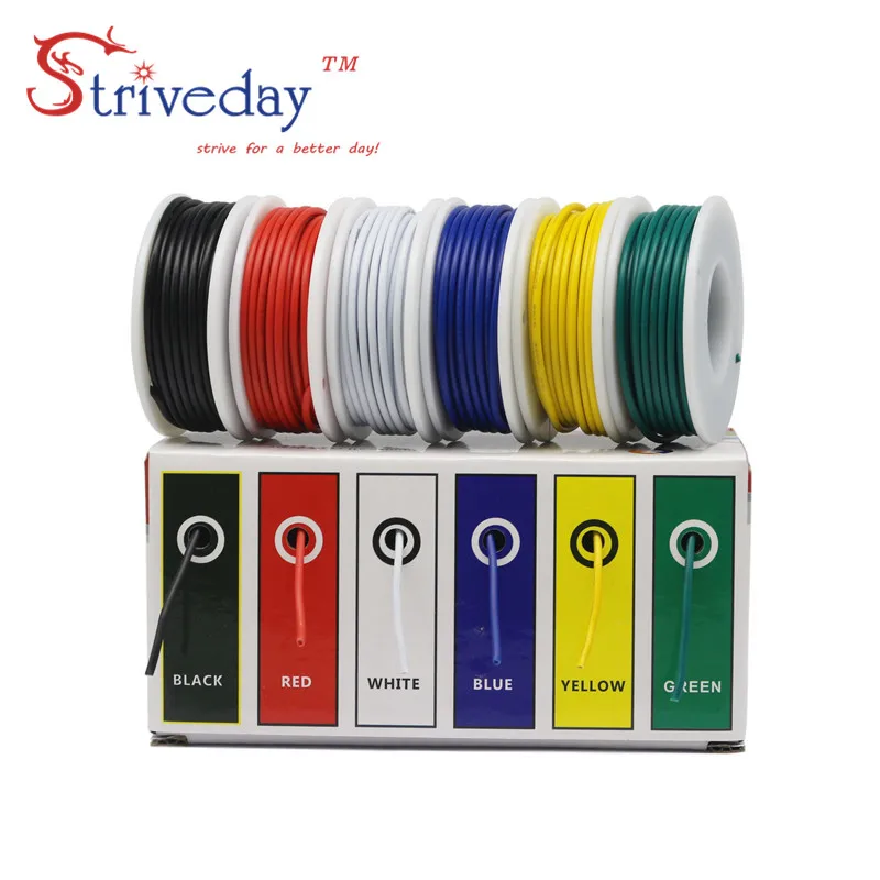 282624222018awg 6 цветов в коробке смешанный провод Высокое качество UL 1007 ПВХ Кабельная линия Луженая чистая медная проволока сделай сам